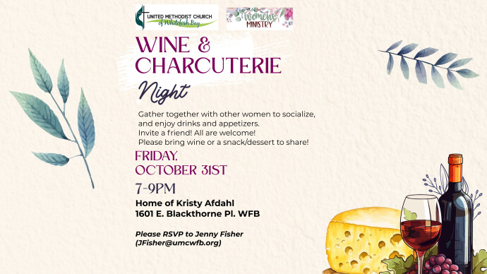 Room: Garden and Church GroundsGather together with other women to relax and enjoy fall-themed charcuterie, drinks and socializing! Hosted by Kristy Afdahl and Jenny Fisher. All women are welcome! Bring a...