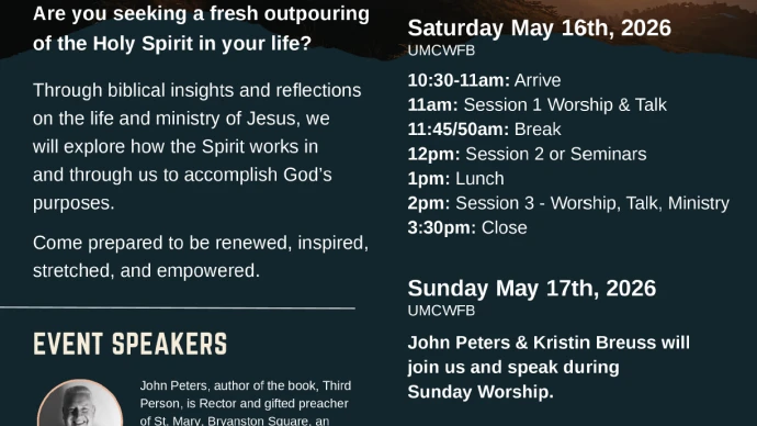 Join UMCWFB pastors and staff to learn more about our faith community! Join us for a casual conversation and information about UMCWFB. This class is required to become a church...